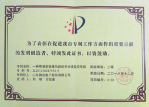 神戎公司的《一種帶測距穩像功能的多光譜監控系統》發明專利 榮獲濟南市專利“二等獎”
