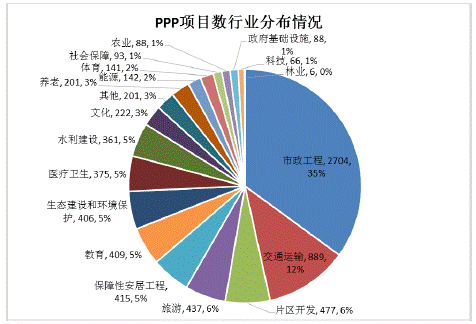 財政部PPP入庫項目數量的行業分布