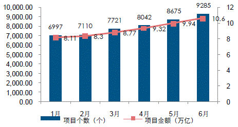 從財政部的“PPP綜合信息平臺項目庫”中可以看到,截至2016年3月31日,經審核入庫的項目為7,721個,總投資8.7萬億元,至6月項目數增加到9285個,總投資10.6萬億元,項目落地率從32.7%增加到49.4%。